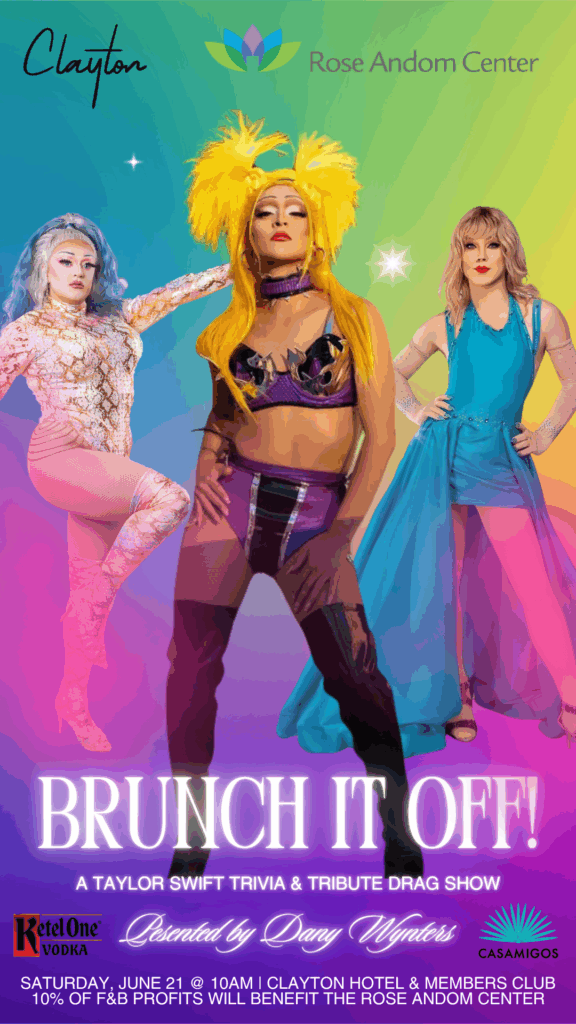 Thank you to everyone who joined us for the Taylor Swift Trivia and Tribute Drag Show, a vibrant Pride celebration in support of survivors and the Rose Andom Center. Held on the rooftop of the Clayton Hotel and Members Club, the event brought together music, laughter, and community in a joyful show of solidarity. Guests enjoyed lively trivia, a build-your-own Bloody Mary bar, and unforgettable performances by Jessie Tyler and Minor Misdemeanor, all hosted by the fabulous Dany Wynters.